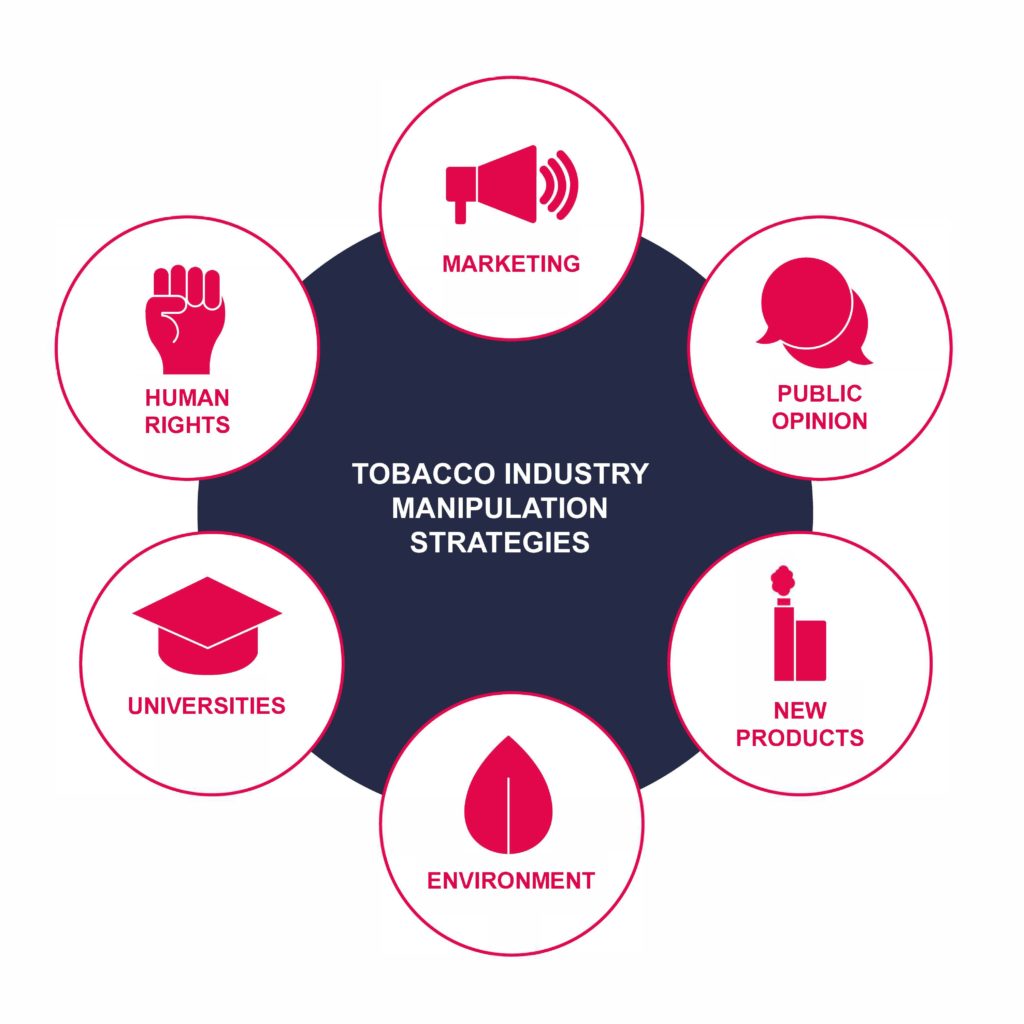 Public opinion : The tobacco industry seeks to shape public opinion and influence political and economic decision-makers. By promoting social responsibility initiatives and exaggerating its economic importance, it hinders regulatory measures to protect public health and uses its influence to obtain policies that favor its commercial interests.